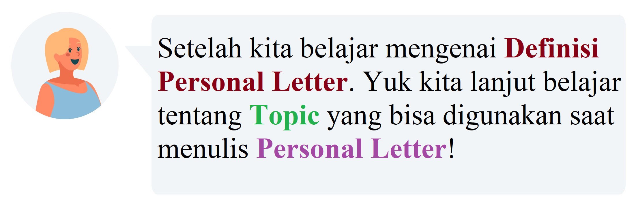 Sobat Pintar, ada banyak hal ataupun topik yang dapat menjadi bahan pembicaraan di dalam surat pribadi (Personal letter).