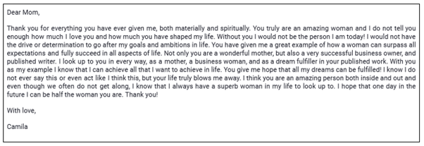 Why did Camila write her mother a letter?