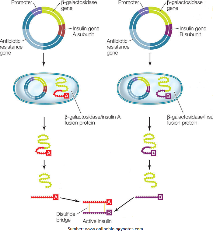 Gen yang memproduksi insulin ke dalam DNA bakteri