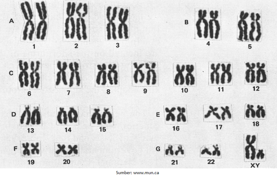 Pria: 22AA + XY atau 44A + XY atau 46, XY
