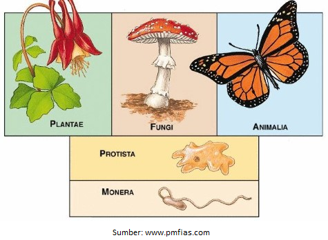 A. Plantae, Fungi, Monera, Protista, dan Animalia