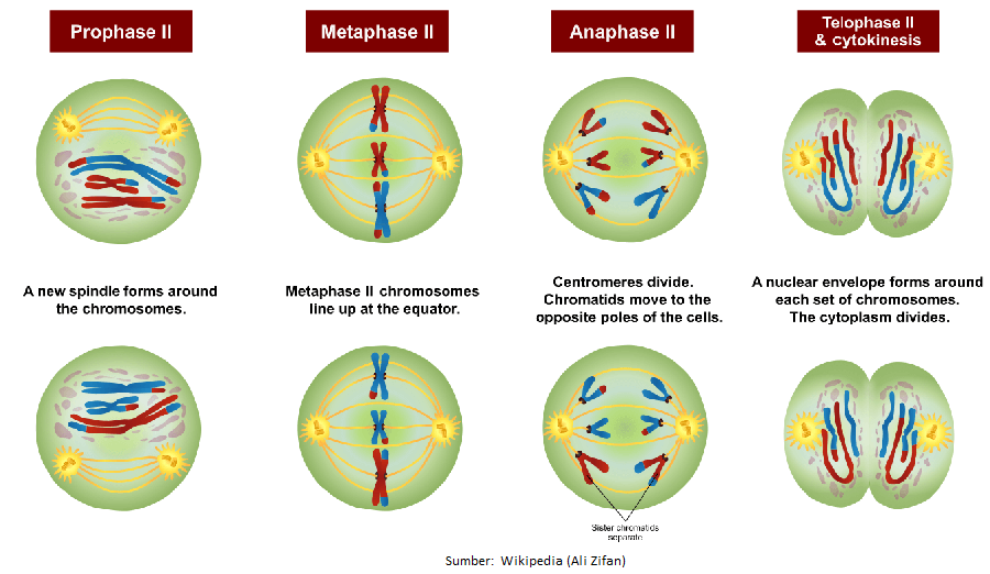Nah, Sobat Pintar, untuk mengetahui lebih lanjut tentang tahap meiosis II, perhatikan uraian selanjutnya!