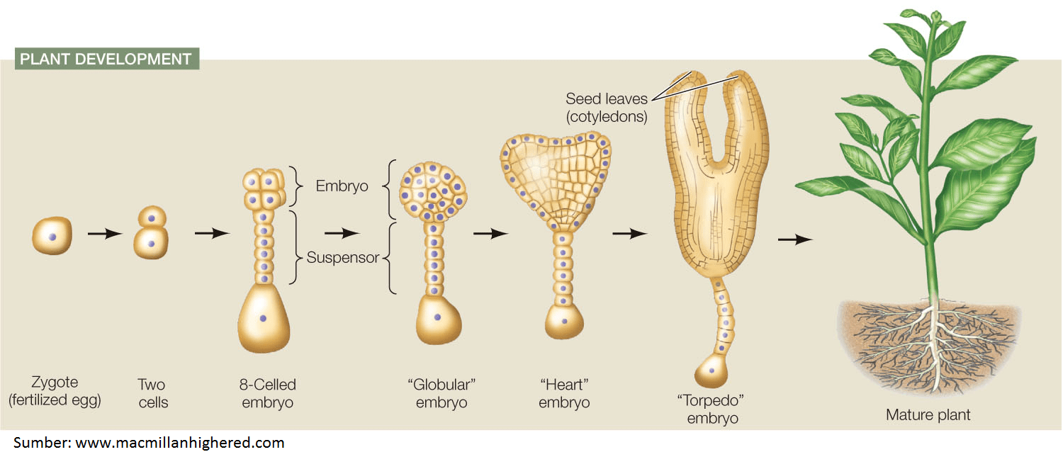 Gambar proses perkembangan tanaman dari zigot sampai tanaman dewasa