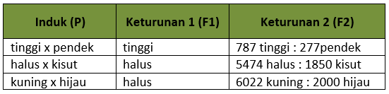 Sehingga perbandingannya menghasilkan bulat kuning : bulat hijau : keriput kuning : keriput hijau = 9 : 3 : 3 : 1.Jika Sobat Pintar perhatikan dan amati percobaan di atas, gen yang telah terpisah tersebut akan bergabung dengan gen dari induk lain pada saat perkawinan.