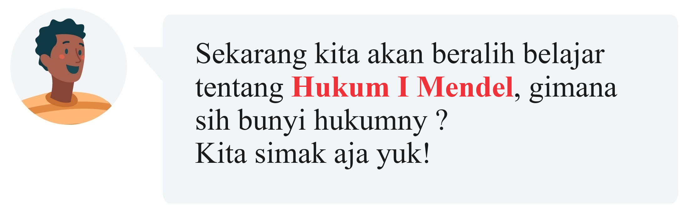 Berdasarkan hasil percobaan yang dilakukan Mendel dengan fakta-fakta yang ada, maka muncullah Hukum I Mendel yang disebut juga Hukum Segregasi yang berbunyi