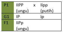 Ratio Fenotip F2 = hitam : kuning : putih = 12 : 3 :1