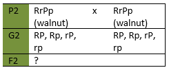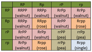 - Walnut (RRPP, RRPp, RrPP, dan RrPp) : 9
