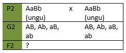Jenis persilangan seperti pada soal merupakan penyimpangan semu atavisme. Persilangan tersebut akan menghasilkan F2 dengan perbandingan sebagai berikut: