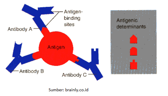 Hubungan antara antibodi dan antigen. Setiap antigen memiliki antibodi yang spesifik.