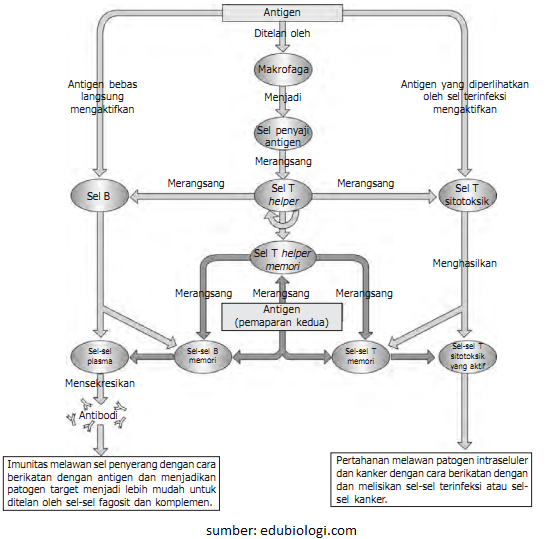 - merangsang sel B untuk menghasilkan sel-sel plasma dan sel-sel B memori.