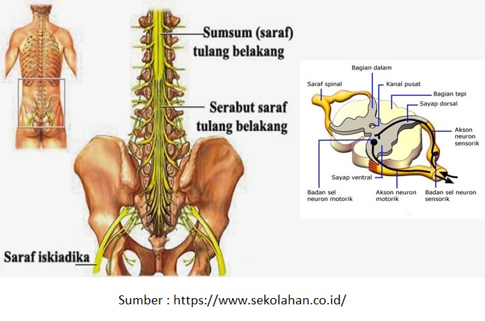 - Mekanisme penghantaran impuls pada sumsum tulang belakang : rangsangan - neuron sensorik - sumsum tulang belakang - akar dorsal - neuron motorik - akar ventral -efektor