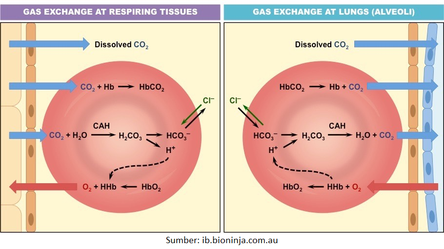 - CO2 diangkut dalam bentuk ion bikarbonat