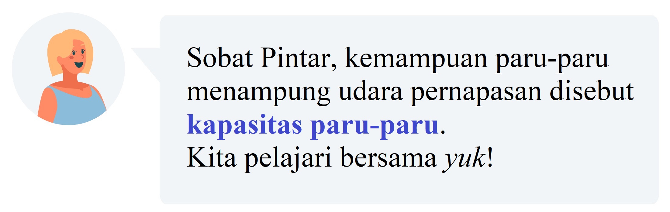 Sobat Pintar, paru-paru dapat menampung sekitar 5.000 ml udara yang disebut kapasitas total paru-paru.