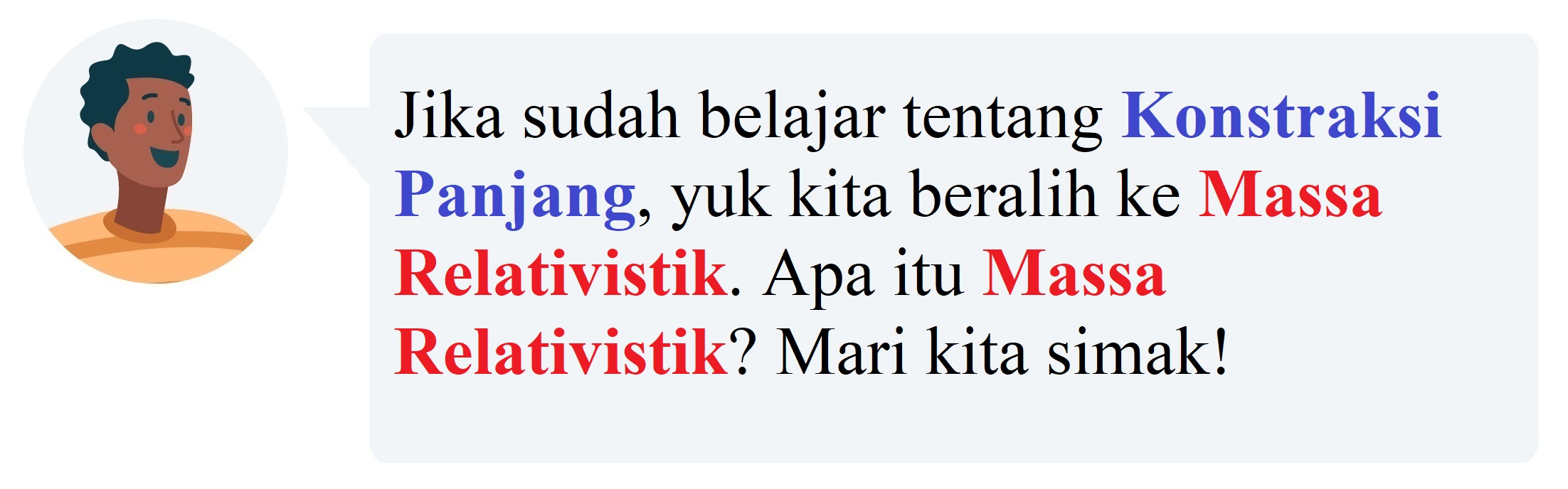 Sebuah benda yang memiliki massa diam m0 maka benda tersebut jika bergerak dengan kecepatan mendekati kecepatan cahaya akan mengalami perubahan massa yang disebut dengan ….