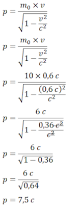 Sebuah Benda memiliki masa benda sebesar 10 kg bergerak dengan kecepatan 0,6 c. Tentukan besar Momentum benda tersebut!