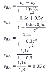 Persamaan-persamaan di atas merupakan penjumlahan kecepatan transformasi Lorentz yang kemudian dikenal dengan penjumlahan kecepatan menurut teori relativitas Einstein. Persamaan tersebut di atas merupakan rumus kecepatan benda yang diamati oleh pengamat yang diam yang disebut rumus penambahan kecepatan relativistik yang sesuai dengan teori relativitas Einstein.