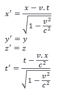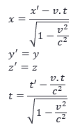 Dari hasil perhitungan turunan dapatkan persamaan transformasi Lorentz yaitu: