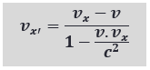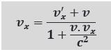 Maka transformasi Lorentz untuk kecepatan benda yang bergerak dapat dinyatakan: