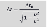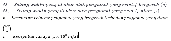 Menurut Einstein hubungan antara kedua selang waktu itu dirumuskan dengan: