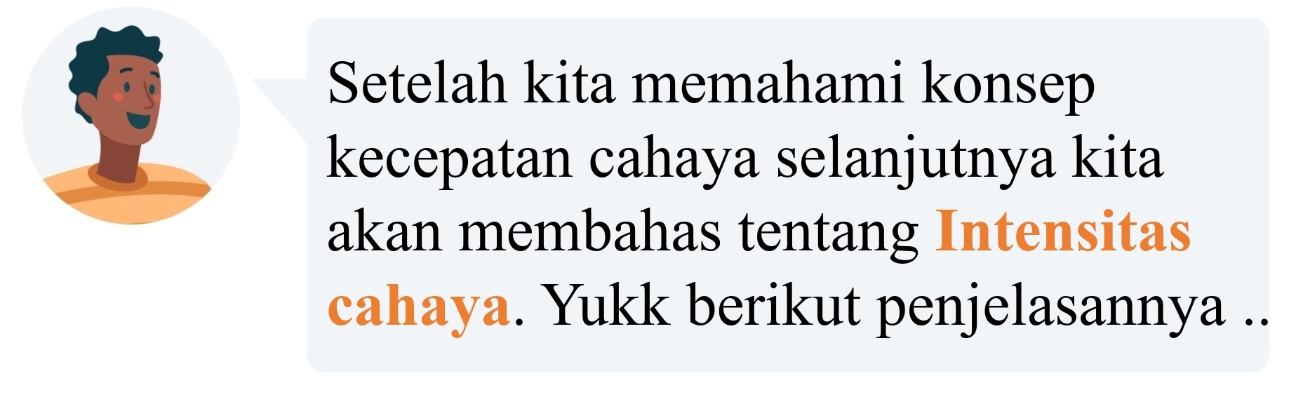 Sobat Pintar, kecepatan atau laju cahaya adalah kelajuan cahaya dalam ruang vakum yang nilainya sekitar 1199.792.458 m/s (3,00 x 108 m/s). Simbol yang digunakan untuk melambangkan kecepatan cahaya adalah c (huruf kecil).