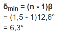 Prisma memiliki sudut pembias 12,6° dan memiliki indeks bias bahan 1,5. Berapakah besar sudut deviasi minimumnya apabila sebuah cahaya monokromatis mengenai bidang pembias prisma tersebut?