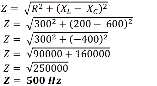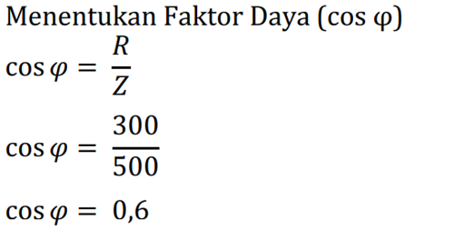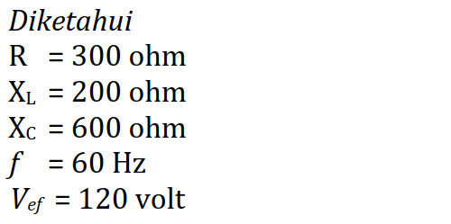 Sebuah rangkaian seri RLC terdiri dari resistor 300 ohm, reaktansi induktif 200 ohm dan reaktansi kapasitif 600 ohm. Rangkaian ini dipasang pada frekuensi 60 Hz dan tegangan efektif sebesar 120 volt. Tentukan nilai faktor daya pada rangkaian tersebut!