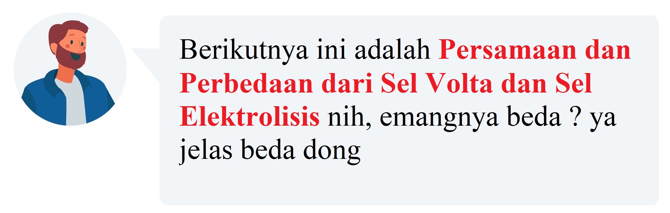 Persamaan dan Perbedaan Sel Volta dengan Sel Elektrolisis