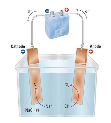 Elektrolisis leburan/lelehan/cairan: unsur-unsur yang terlibat dalam reaksi adalah kation, anion dan elektrodenya.
