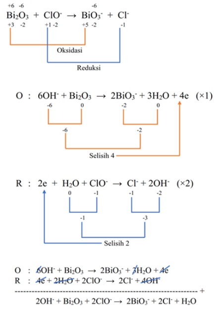 Setarakan reaksi berikut, Bi2O3 + ClO- --> BiO3- + Cl- (suasana basa)