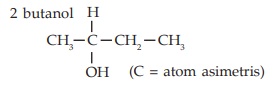 Selain isomer-isomer di atas, alkohol sekunder yang mengandung atom C asimetris (atom C kiral) menunjukkan keisomeran optis. Atom C asimetris adalah atom C yang mengikat empat atom atau gugus yang berbeda.