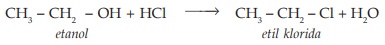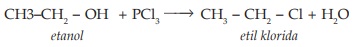 - Dapat bereaksi dengan PX3, PX5, atau SOX2 membentuk alkil halida (R -X)
