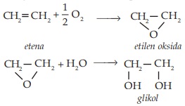 Glikol dibuat dengan cara mengoksidasi etana dengan oksigen kemudian dilanjutkan hidrolisis. Reaksi dilakukan pada suhu 2500C dengan katalisator serbuk perak.