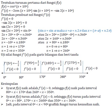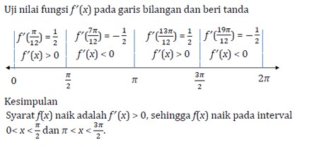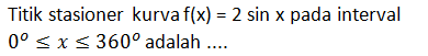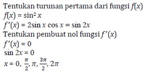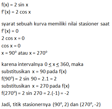 Selanjutnya, aplikasi turunan fungsi trigonometri pada titik stasioner.