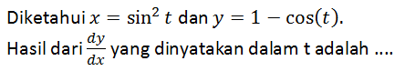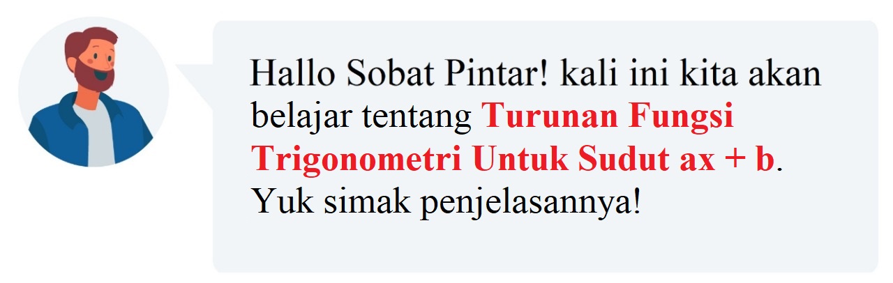Oh iya Sobat, Dalam menentukan turunan fungsi trigonometri untuk sudut ax + b dibutuhkan aturan rantai.