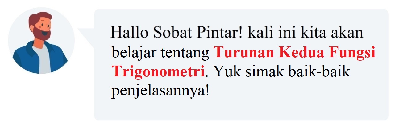 Nah, masih dalam pokok bahasan turunan, kali ini kita akan belajar mengenai turunan pada fungsi trigonometri. Jadi, fungsinya mencakup perbandingan trigonometri seperti : sinus, cosinus, tangencosecan, secan, dan cotangen.