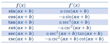 Turunan Fungsi Trigonometri Untuk Sudut ax + b