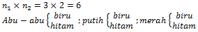 {(abu-abu, biru), (abu-abu, hitam), (putih, biru), (putih, hitam), (merah, biru), (merah hitam)}
