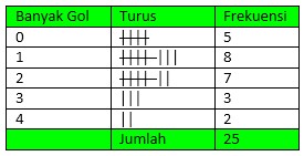 5. Memasukkan data ke dalam kelas-kelas yang sesuai dan menentukan nilai frekuensi setiap kelas.