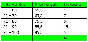 3. Menentukan panjang interval kelas (I) dengan menggunakan rumus : I=J/K