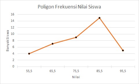 Apabila pada titik-titik tengah dari histogram dihubungkan dengan garis dan batang-batangnya dihapus, maka akan diperoleh poligon frekuensi.