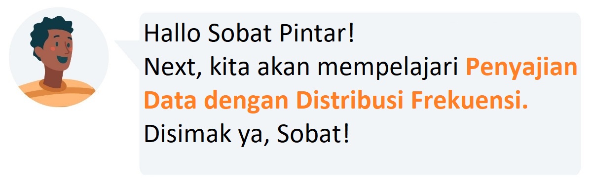 Yaa, tepat sekali, Penyajian Data dengan Distribusi Frekuensi. Yuk kita pelajari Penyajian Data dengan Distribusi Frekuensi!