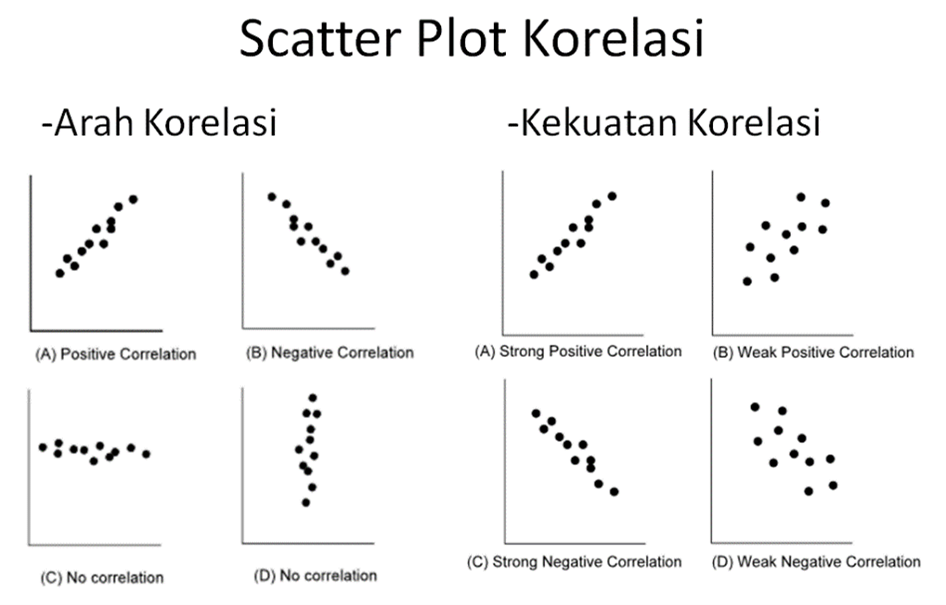 Berikut contoh diagram pencar berdasarkan pembagian pola korelasinya.