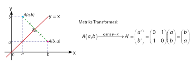 Jenis transformasi selanjutnya adalah Pencerminan terhadap Garis Y=X. Jika digambarkan adalah sebagai berikut