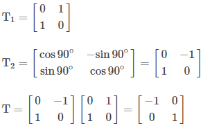 Transformasi T adalah komposisi dari pencerminan terhadap garis y = x dilanjutkan rotasi dengan pusat O(0,0) sebesar