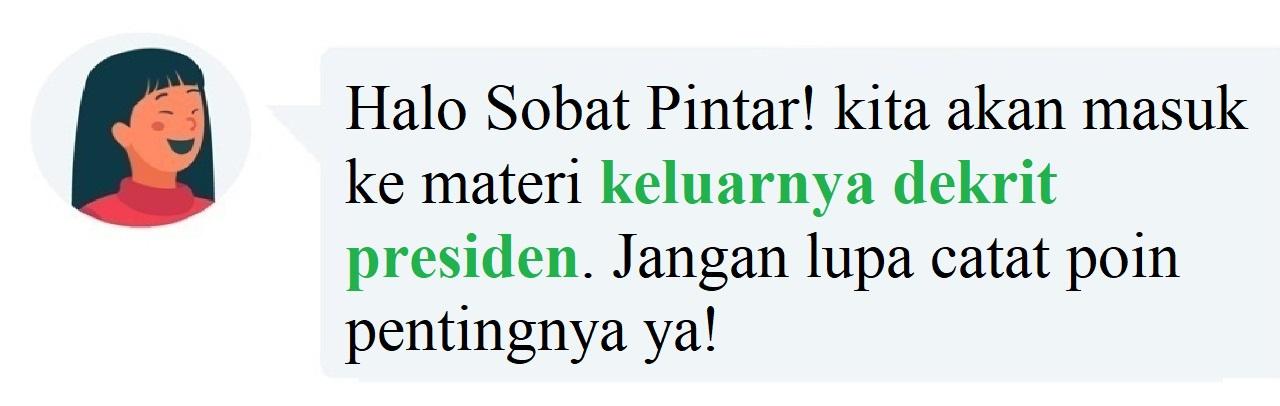 Pada tanggal 5 Juli 1959 Presiden mengeluarkan Dekrit Presiden yang isi pokoknya sebagai berikut: