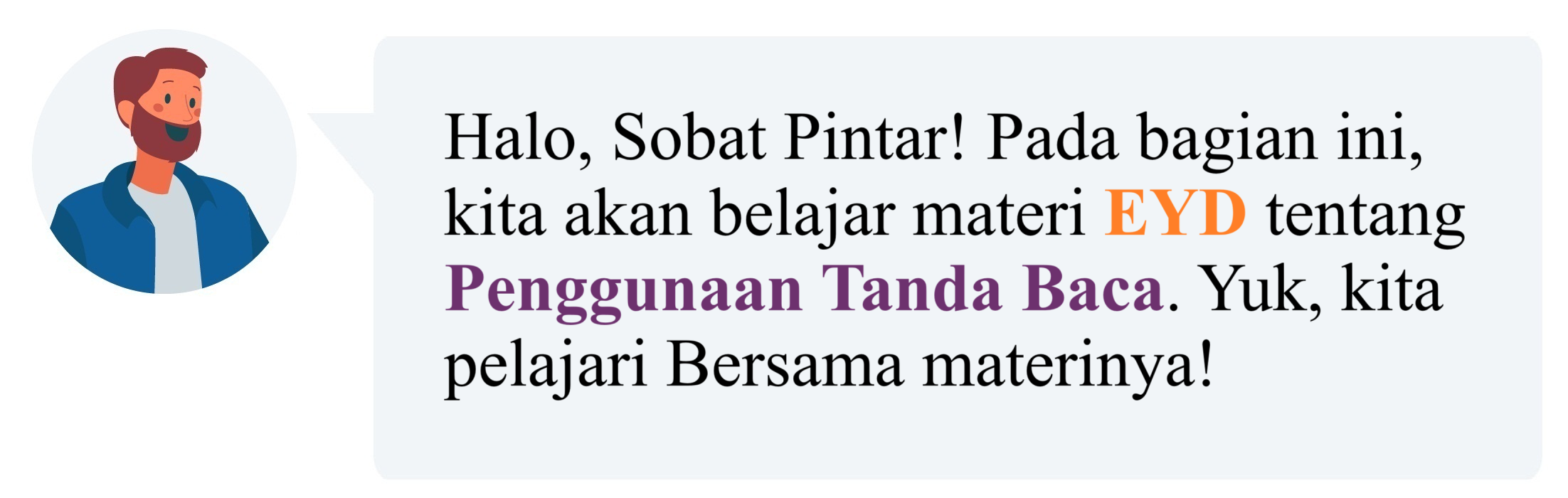 Sobat pintar sudah tahu gak apa itu tanda baca? Tanda baca merupakan tanda yang dipakai dalam sistem ejaan, seperti titik, koma, tanda hubung. Tanda baca berfungsi menunjukkan struktur serta intonasi dalam pembacaan. Berikut merupakan jenis tanda baca dalam Bahasa Indonesia beserta fungsinya.