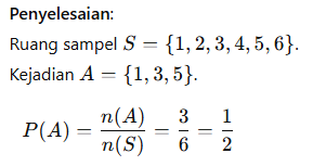 Sebuah dadu dilempar sekali. Tentukan peluang muncul angka ganjil.