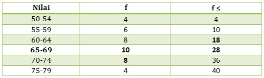 Jika jumlah data ganjil, median adalah data ke-(n+1)/2