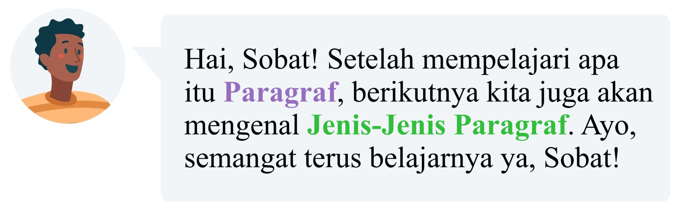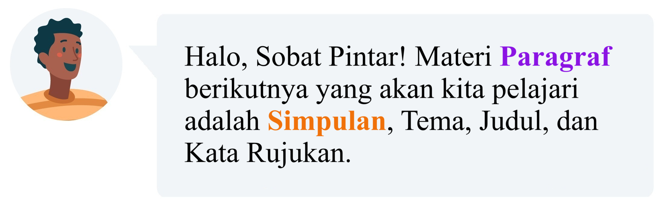 Untuk memadukan seluruh informasi yang terdapat di dalam paragraf, Sobat dapat menggunakan kata rujukan. Kata rujukan adalah kata atau kelompok kata yang merujuk pada sesuatu yang sudah disebutkan sebelumnya dalam teks atau percakapan. Kata rujukan berfungsi untuk: