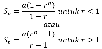 Rumus yang digunakan untuk menentukan jumlah n suku dari deret geometri, yaitu: